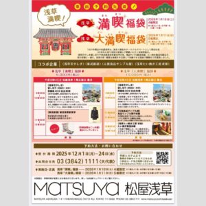 1931年の開店以来、90年余りに渡り浅草の地に密着した老舗百貨店「松屋浅草」にて、求楽のたい焼き体験®入り福袋の予約を受け付け中です! 浅草の街、文化を半日でたっぷり体験できる福袋、ぜひご利用ください!